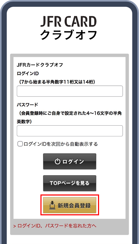 - ・パスワードは、JFRカードクラブオフ登録時にご自身で指定された「パスワード(半角英数字)」です。