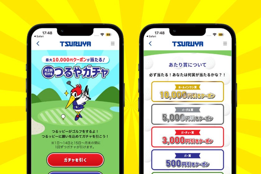 - 貯まったポイントを「つるやゴルフ(大阪エリア)」でご利用いただく事はできません。