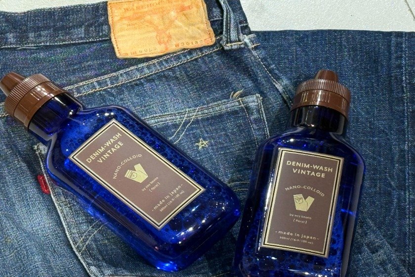 DENIM-WASH VINTAGE(デニムウォッシュヴィンテージ)は、穿き込んだジーンズなどの皮脂汚れや不純物のみを取り除き、濃いインディゴを保ってくれる効果のあるデニム用洗剤です。浸け置き洗いならさらにその効果は大きく、色落ちさせたくない一本やヴィンテージジーンズにも使えます