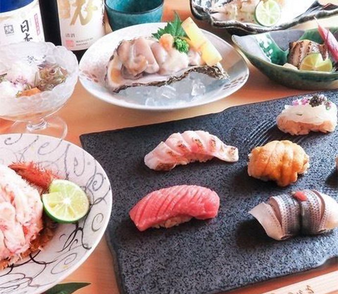 豊富な魚介が揃う北陸の食材を厳選して仕入れ、ネタの味を引き立たせる赤酢のシャリを使った創作鮨をお楽しみください。鮨以外にも季節に合わせた鍋料理もございます。お料理とよく合う北陸のお酒もご用意しております。白木を基調としたモダンな店内は、ごゆっくり寛げる空間です。お一人様、大切な人とのお食事、お子様連れの会食、ご接待、女子会、記念日などのさまざまなシーンにご利用いただけます。