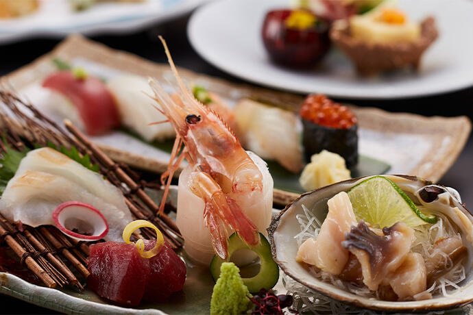 その時期しか味わえない北海道の魚介や野菜を集めて調理いたします。料理長自らの舌で確かめた道産食材中心のネタの数々を、気さくな雰囲気でお召し上がりください。ランチタイムにはボリュームたっぷりの定食メニューや、華やかな御膳料理もご用意しております。プラザ伝統の中国料理もお楽しみいただけます。全道各地の著名な酒蔵から直接仕入れ。街場ではなかなかお目にかかれない貴重な日本酒もご用意しております。