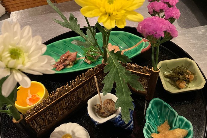 春夏秋冬、四季折々の美味しい食材を使い、五感で季節を感じて頂けるよう真心込めてお作り致します。