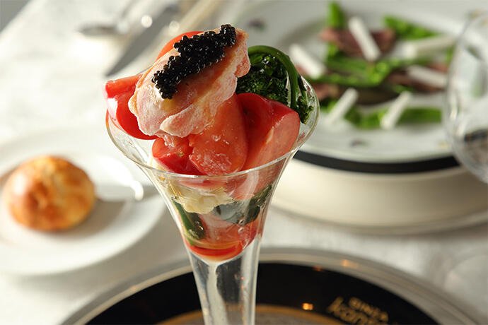 毎月変わる季節の厳選された食材だけを使ったコース料理に加え、フランスワインに精通しているシェフに、お料理と相性抜群のワインをペアリングいただく特別コースです。産地に直接おもむき、生産者の方から直接交渉して仕入れた旬の食材で織りなす、師玉のコースを是非ご堪能ください。