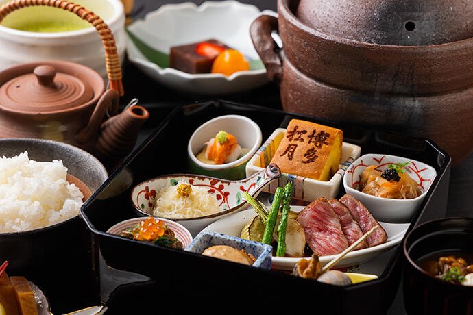 銀座の銘店「和匠 銀座松月」の姉妹店。料理長自らが厳選するこだわりの黒毛和牛をはじめ、新鮮な魚介やお野菜を取り揃えております。お客様ごとに炊き上げる土鍋御飯や鯛めしが付いた四季折々のコース料理もご用意。また2~最大22名様まで対応可能な個室を完備し、接待や記念日等の大切なお食事からご宴会までさまざまなシーンでご利用可能でございます。