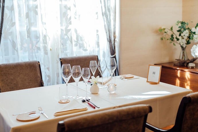 オープンキッチンを備えた店内に2~4名様用のゆったりとしたテーブル席やソファ席をご用意しております。10名様以上でご利用される場合は貸切も承っております。また、カウンター席ではシェフの繊細な手さばきや熱気の中で生み出される料理の数々をお楽しみいただけます。さまざまなご用途に合わせてシェフの情熱が込められた料理をお楽しみください。