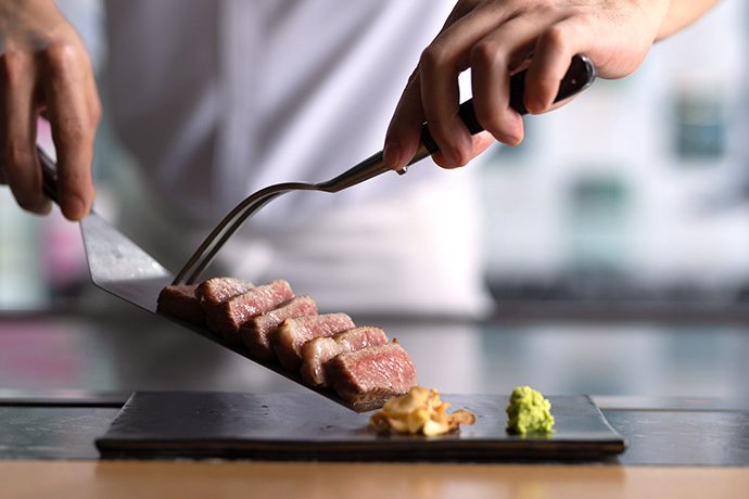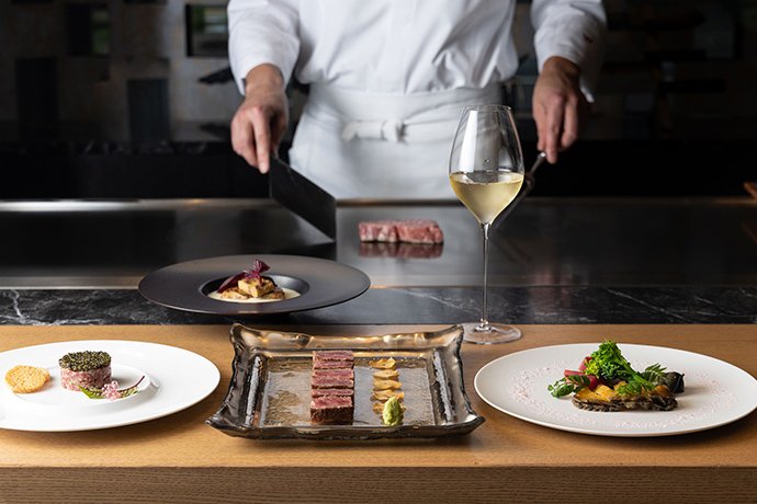 大阪を代表する2名のクリエイターによる化学反応!鉄板焼「MYDO(まいど)」では、黒毛和牛のブランド牛や国産赤牛の鉄板焼、割烹スタイルでご提供するラグジュアリーな鉄板料理、さらにはWらしいスタイリッシュなアレンジを加えた大阪ソウルフードなどを3つのエリアに分かれたカウンターでご提供します。ブランド牛、国産牛から、アワビやオマール海老などの新鮮なシーフードまで。厳選した食材をこころゆくまでお楽しみください。