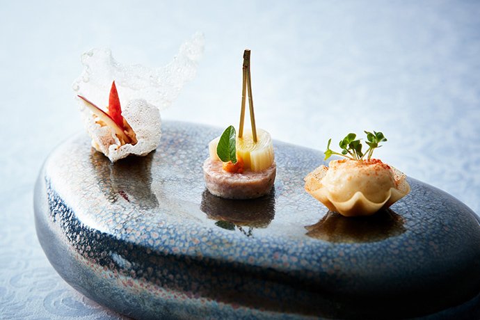 じっくりと時間をかけて作る伝統的なブイヨンやフォン、ソースとともに細やかに管理した食材一つひとつを最良の状態で美しく仕上げます。 現代的かつ独創的な要素に和のエッセンスを取り入れながら、コースを召しあがった後にフランス料理の独特で深い満足感を感じていただけます。 記念日のほか、気軽なお食事にもご利用をお待ちしております。