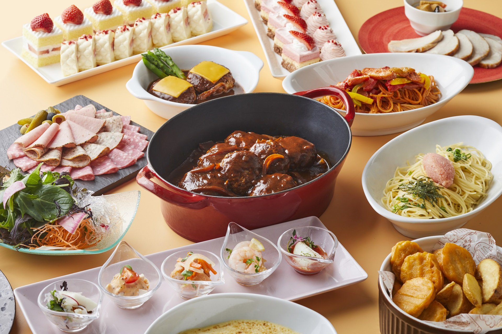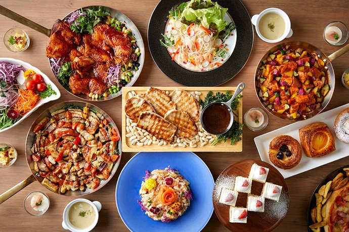 公開広場に面した明るい店内にはフランスの画家ポール・ギヤマンの絵3点が展示されています。ティータイムをはじめ、朝食・ランチ・ディナーそれぞれのメニューも豊富。毎週土・日曜日はランチビュッフェを開催。