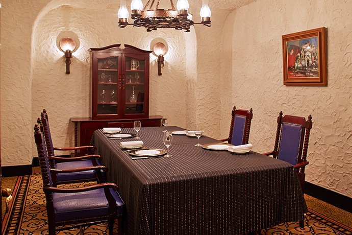 ″カステリアン″の語源はカスティーリャ王国。中世ヨーロッパ イベリア半島中央部にあった王国で後のスペイン王国を由来とします。レンガの暖かさと白壁のスペイン風インテリアが美しいレストランです。1400年代スペイン王朝の君主の名の付いた4つの個室はお城の中で晩餐会を開いているかのような雰囲気の中でお食事ができます。