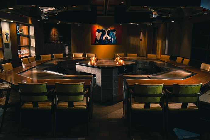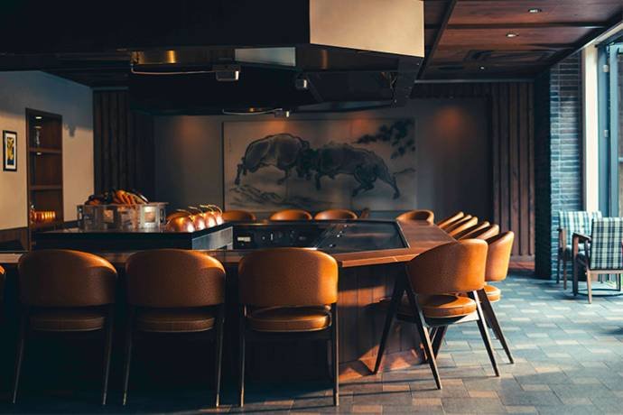 厳選した黒毛和牛や九州各地から取り寄せた野菜など、地産地消にこだわった厳選食材を目の前で華麗に焼きあげます。