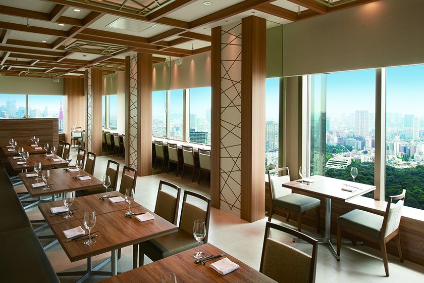 東京の街並みを眺望するレストランで