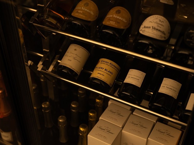 店内では、200種類以上のシャンパーニュの中から、その日の鮨に最も合う一杯をご提案。