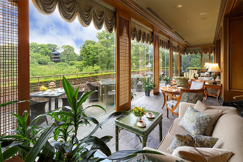 都内ホテルで最初にアフタヌーンティーを提供したといわれる、緑豊かなロビーラウンジ。
