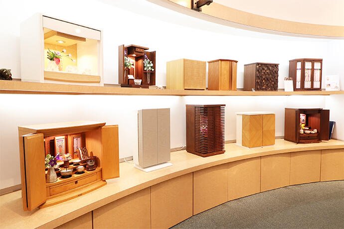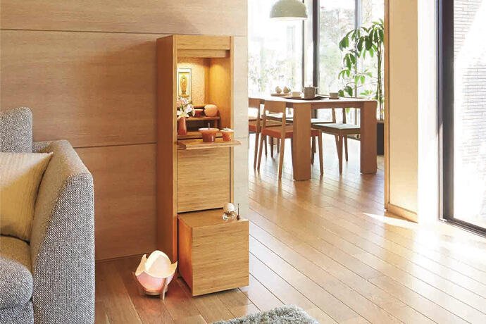 福岡・博多のモダンな現代仏壇直営店ギャラリーメモリア福岡天神。西鉄「福岡駅」より徒歩10分、地下鉄「天神駅」より徒歩5分、「アクロス福岡」の北向かいにございます。福岡市内だけでなく北九州市や佐賀市、唐津市からもご来店いただいております。お洒落な仏壇が100種類以上展示しており国産品の品揃えが豊富です。小さい仏壇や壁掛けタイプなどリビングに合わせてお選びいただけます。