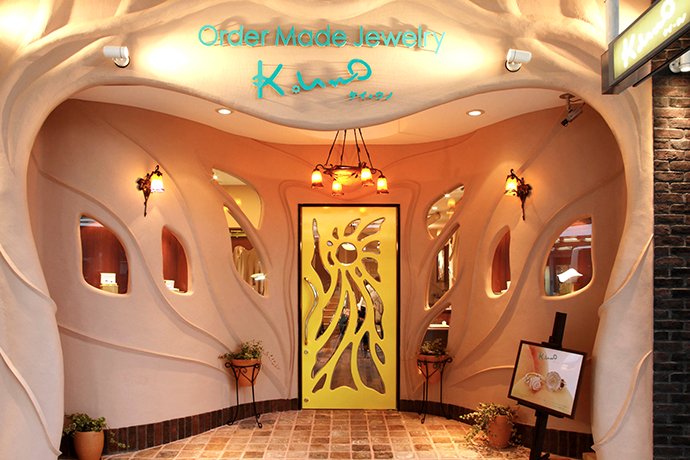 店舗では、デザイナーがご要望を伺いながら無料で何枚でもデザイン画を描きその場でご提案。完成前に原型のチェックも可能です。お持ちの宝石や貴金属を活用してのジュエリー製作も行っておりますので、ご自宅で眠っている指輪やネックレス、宝石などがありましたらぜひお持ちください。店内はアール・ヌーヴォーを思わせる柔らかな曲線に囲まれた空間が広がり、ゆったりとくつろぎながらジュエリー選びをお楽しみいただけます。