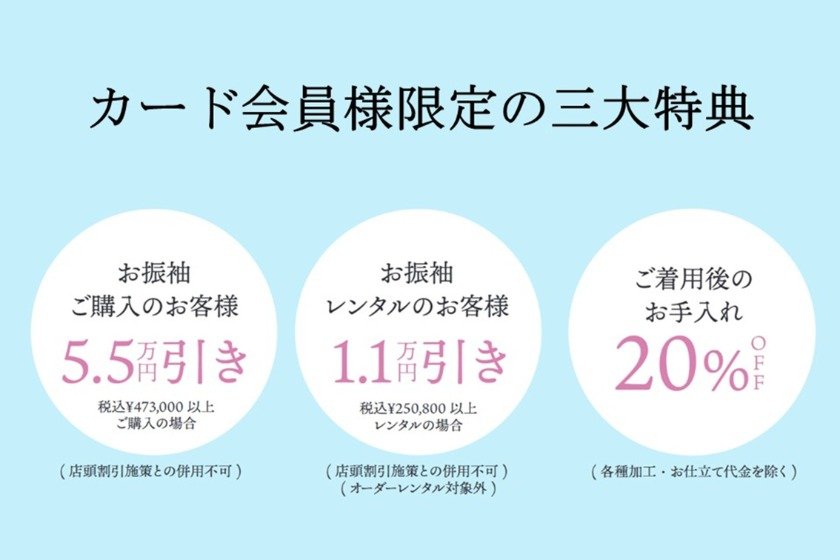 ■特典2 お振袖レンタルのお客様:税込250,800円以上ご購入の場合、11,000円割引いたします。