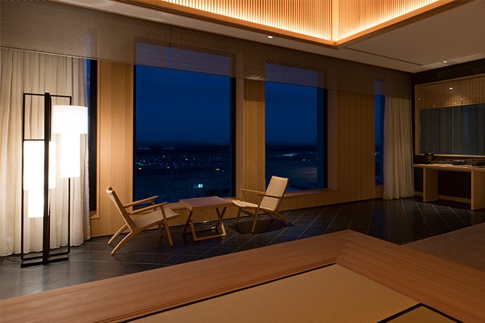 北海道の玄関であり、日本の玄関でもある新千歳空港国際線ターミナル直結のホテルです。北斎、広重などの浮世絵、若冲、芳中、白隠といった江戸名画の名品、江戸から明治にかけて制作された工芸品やアート作品を至る所に展示しています。使いやすいレイアウトで、よりリラックスした時間をお過ごしいただけるゲストルームにも日本美の要素を豊富に取り込み、心地よい温もりが溢れる空間で一日の疲れをゆっくりと癒していただけます。