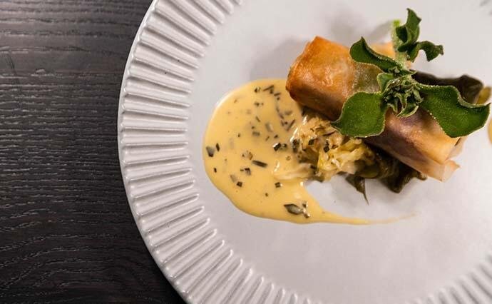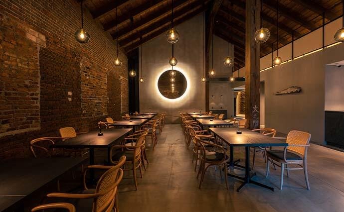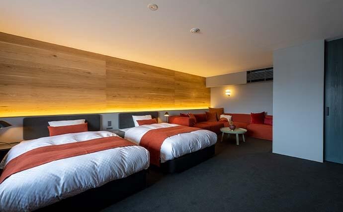 NIPPONIA HOTEL 函館 港町は、函館港を望む赤レンガ倉庫を、たった9室の上質なホテルへ改修しました。ダイニングや客室は、赤レンガの素材感を活かした心地よい温かな空間。旅の醍醐味であるお食事は、新鮮な魚介と採れたての野菜を、北欧料理の手法を取り入れたフルコースに。
