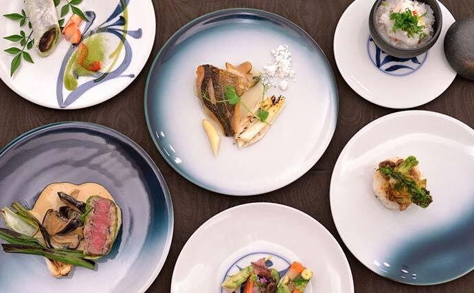 お食事は瀬戸内海の海の幸、自然豊かな山々の幸、そこから流れる清らかな肱川の川の幸など、恵まれた自然地形から生み出される食材の魅力をフレンチの技法で引き出し、ジャンルにとらわれないフュージョン料理として仕上げます。大洲城の天守を正面に望む開放感溢れる空間でお愉しみください。