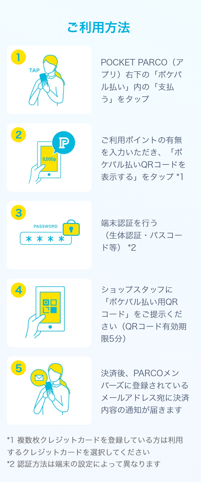 ※ 店頭ポケパル払いは、登録クレジットカード毎に1日の支払い回数および金額の上限を設定しています。詳しくはこちら