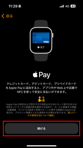 | Apple Watch | iPhoneのWatchアプリからApple Payを設定できます。 |