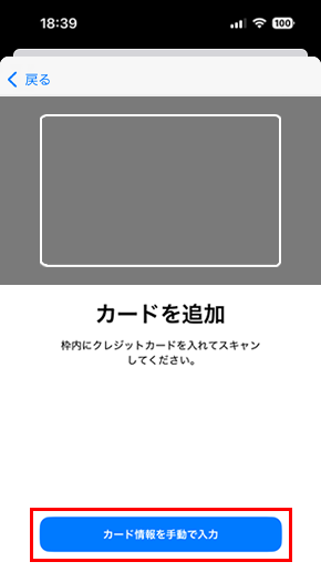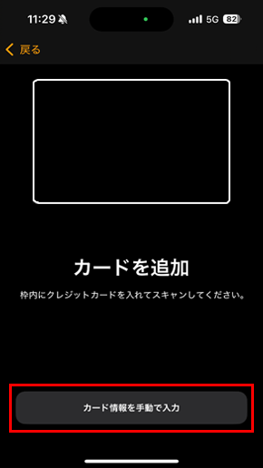 ⑤カードの情報をiPhoneのカメラで読み取るか、手動で入力する