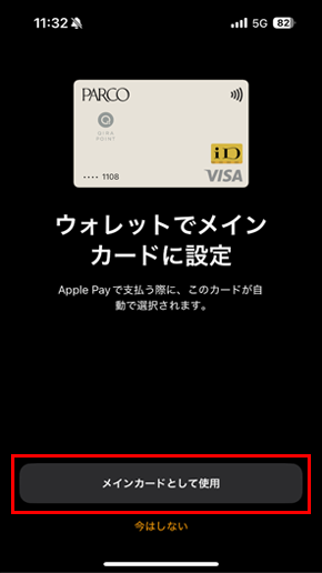 メインカードとして使用する場合は、「メインカードとして使用」をタップ