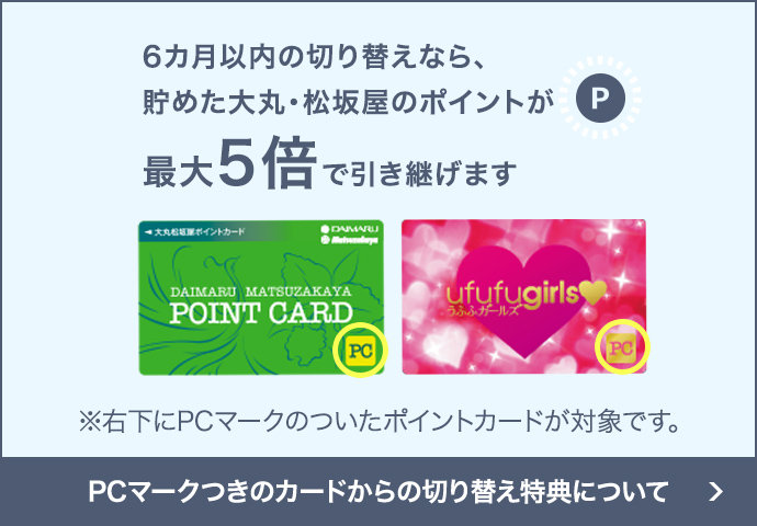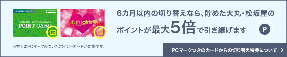 - 大丸松坂屋カードに移行したポイントの積立期限・交換期限は、大丸松坂屋カードの各期限に準じます。