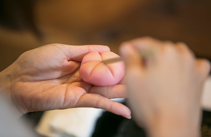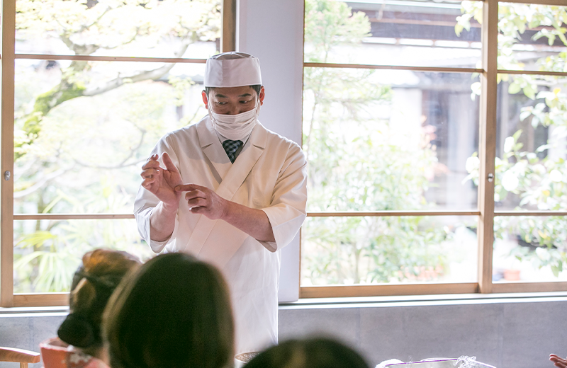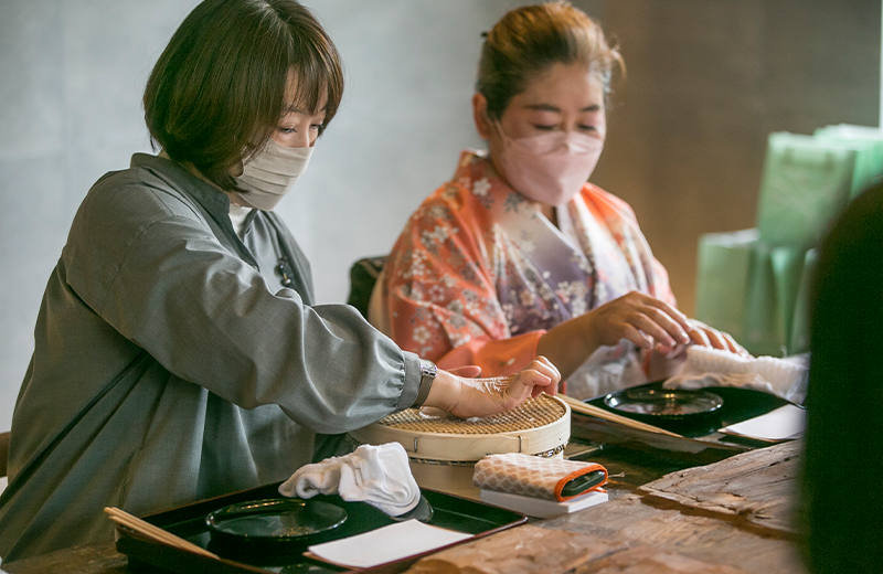 また、茶道体験では、千利休を祖とする茶道家元・裏千家の先生をお招きし、「遼廓亭」での茶点で会員様をおもてなし、茶道体験では作法やお茶の精神など日本の伝統文化についてレクチャー。和菓子づくり体験では、京菓子の老舗「千本玉壽軒」のご主人が講師となり、会員様ご自身が、桜の花をモチーフにした「桜花」と、春の季節をイメージした「春霞」、2種類の和菓子づくりに挑戦するなど、その道のプロフェッショナルとともに上質な時を過ごすことで、より豊かなマインドフルネスへとつなげていきました。