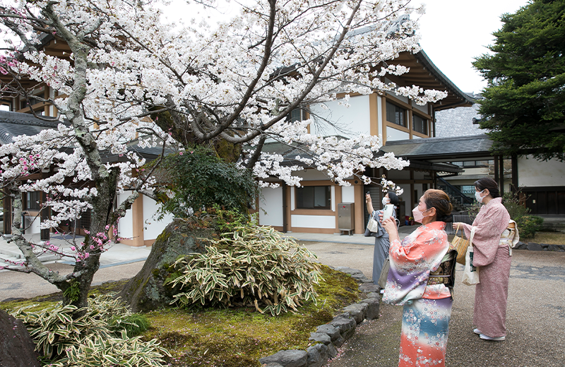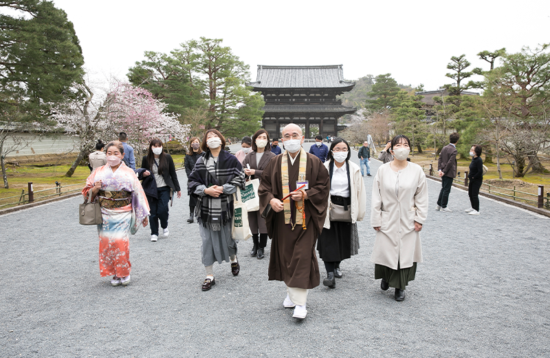 会場は、京都市右京区御室にある世界遺産・仁和寺。平安時代の仁和4(888)年、第59代宇多天皇によって創建され、皇族が代々住職を務めた日本初の門跡寺院として栄えた古都を代表する名刹です。イベントが開催された3月25日は、ちょうどソメイヨシノやミツバツツジなどが咲き始める絶好のお花見シーズン。境内にもいたるところに艶やかな花が咲き誇り、参加者のみなさんの目を愉しませてくれました。