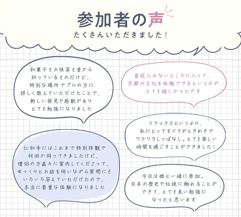 今回のイベントについて、参加された方々から「日常では体験できないような特別な空間や時間を過ごせたことはもちろん、そのなかでゆったりとリラックスして非日常を感じることができました」「お茶やお菓子などを嗜むちょっとした時間が、心を豊かにしてくれると気づけました」など、喜びの声が多数。第2弾として予定している「香盛りと写経体験」にもたくさんの期待が集まりそうです。