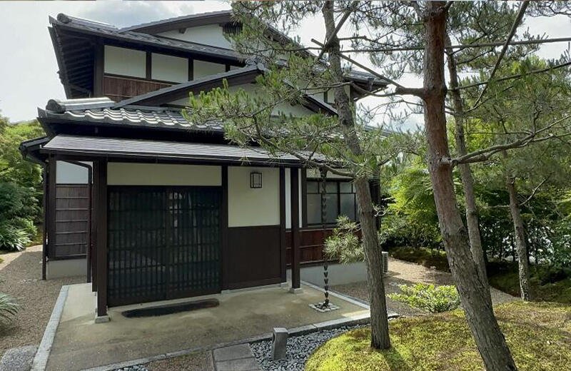 イベント会場は、仁和寺境内の一角に佇む「松林庵」。もともと仁和寺の寺侍であり侍医も務めた名家・久富家の旧家屋を、昭和12年(1937)に寄贈され移築した数寄屋造りの宿坊で、窓から見える美しい和庭園や簡素な趣のなかに個性的な茶室や太鼓橋の廊下を備えるなど、伝統とモダンが溶け合う上質な静寂空間が広がります。