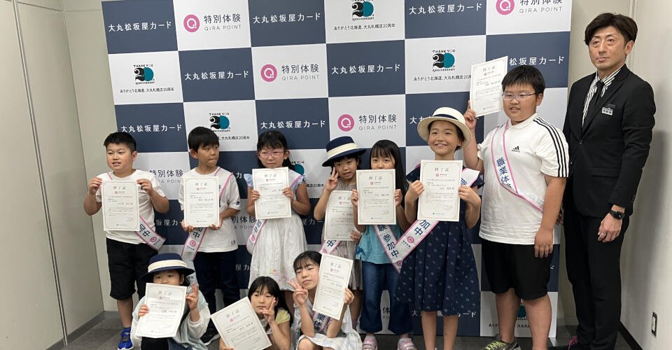 2023年8月10日、大丸札幌店にて、会員のお子様に百貨店のお仕事を楽しく学んでいただく「職業体験」イベントが行われました。参加したのは、QIRA[キラ]ポイントを利用して応募した会員様のお子様たちで、抽選で選ばれた9歳から11歳までの男女合わせた10名様。普段はご家族と一緒にお客様としておもてなしを受ける側のお子様が、おもてなしをする側になるという特別な体験をしました。