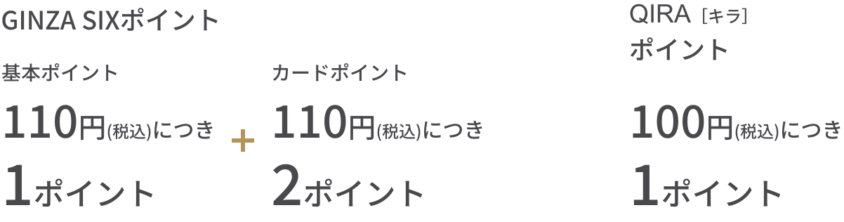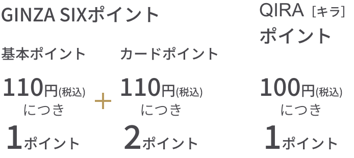 GINZA SIXプレステージカードをご利用いただくと、QIRAポイントが2~3倍以上お得に貯まります