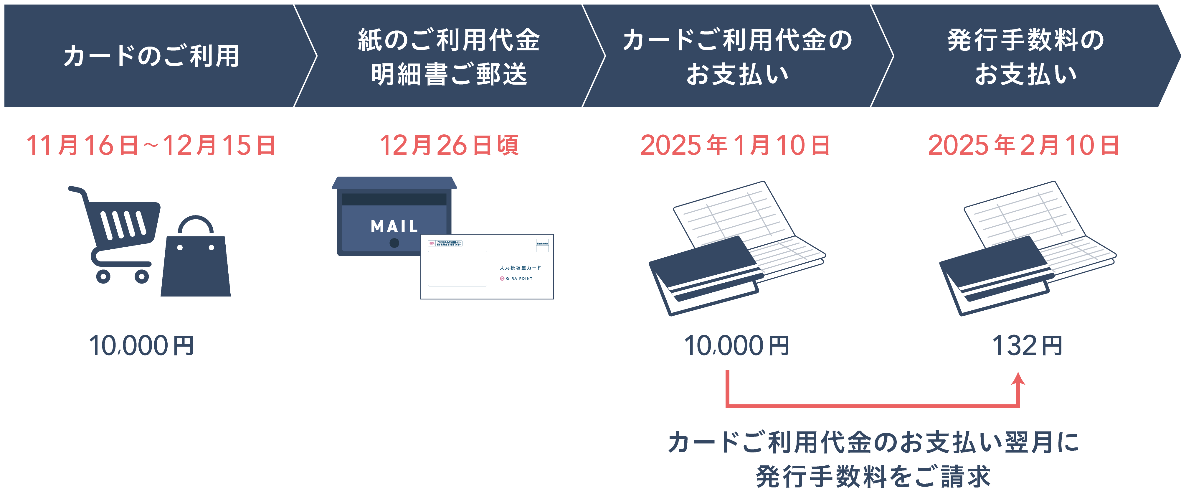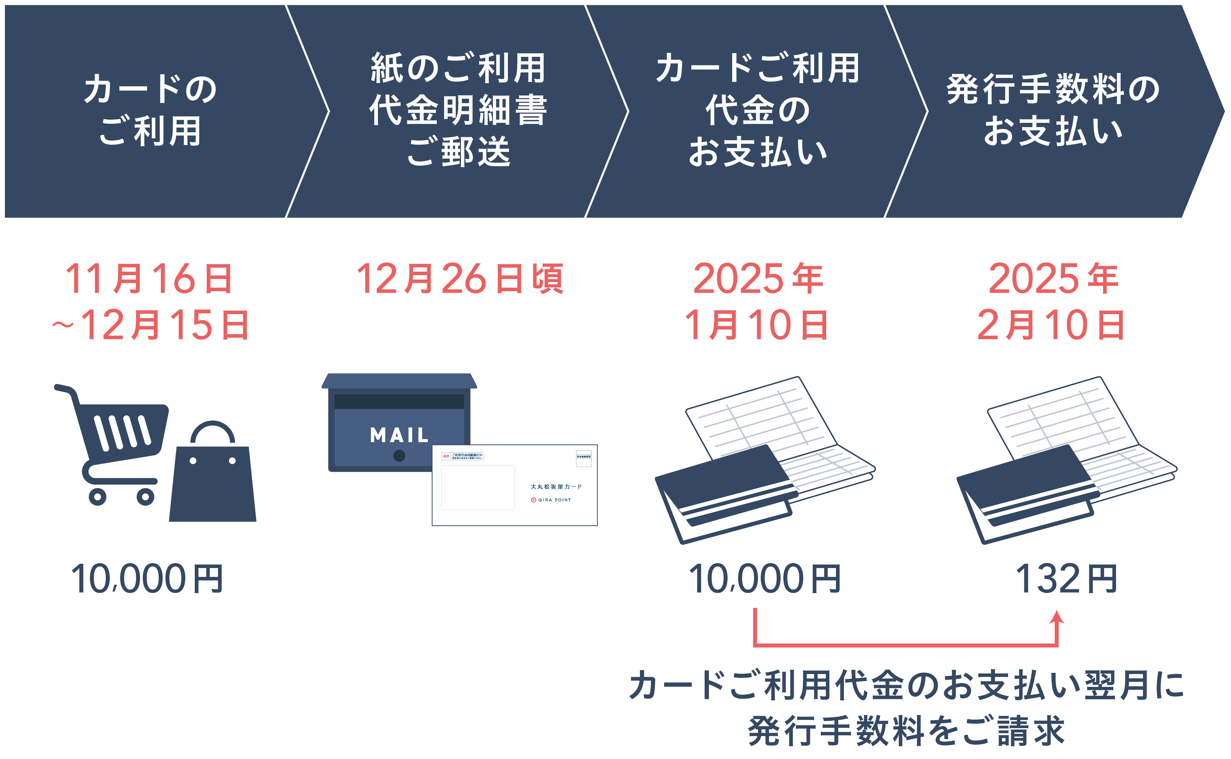 昨今の原材料費等の高騰に伴い、2025年1月10日(金)お支払い分のご利用明細書より、紙のご利用代金明細書1通につき132円(税込)の発行手数料をご請求させていただきます。