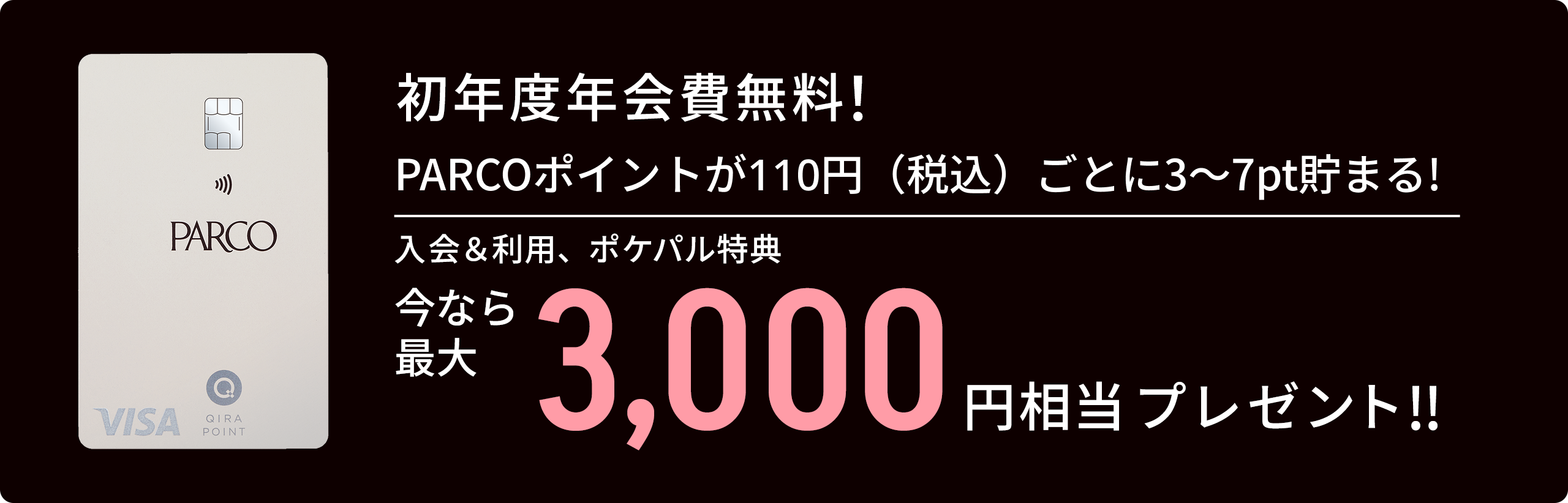 ※PARCOポイントを貯めることができる決済手段はPARCOカードとポケパル払いです。(店頭ポケパル払いは、1日の支払い回数および金額の上限あり)