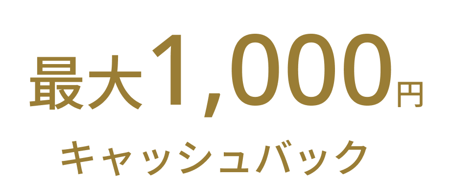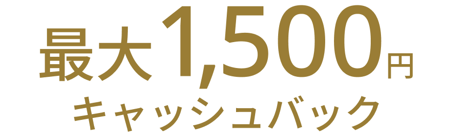 • 入会月の翌月末までのクレジット利用に対して最大1,500円キャッシュバックいたします。