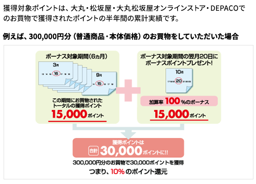 半年間の獲得ポイント数に応じてさらに大丸松坂屋ポイントをプレゼント
