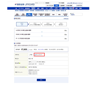 ④クレジットカードを選択、積立金額を設定し、「次へ」をクリック