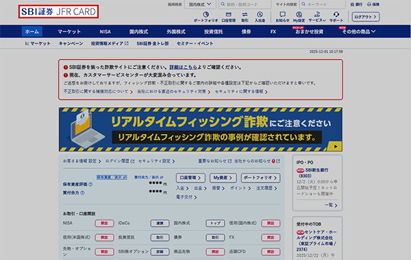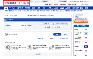 SBI証券WEBサイトにログインし、画面左上に「JFRカード」のロゴが表示されていることを確認してください。