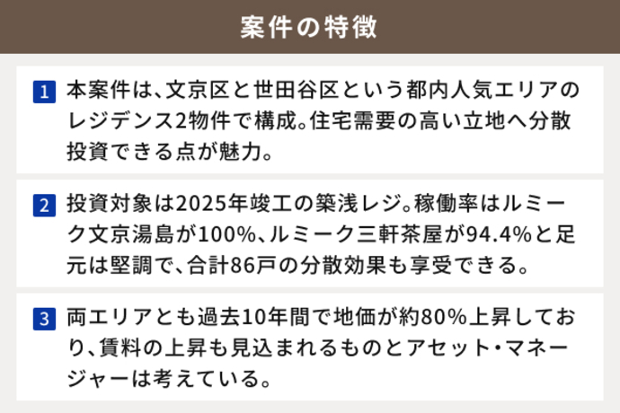- 三井物産グループが厳選した安定した賃料収入に期待ができる不動産やインフラなどの資産への投資機会を提供します。