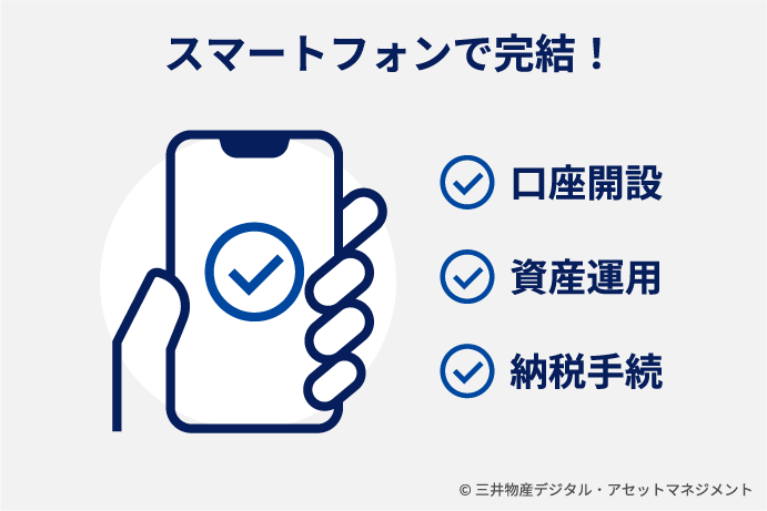 • 口座開設・資産運用の手続きは全てスマートフォンで完結。「郵便が受け取れなくて口座開設できなかった」なんてことはありません。