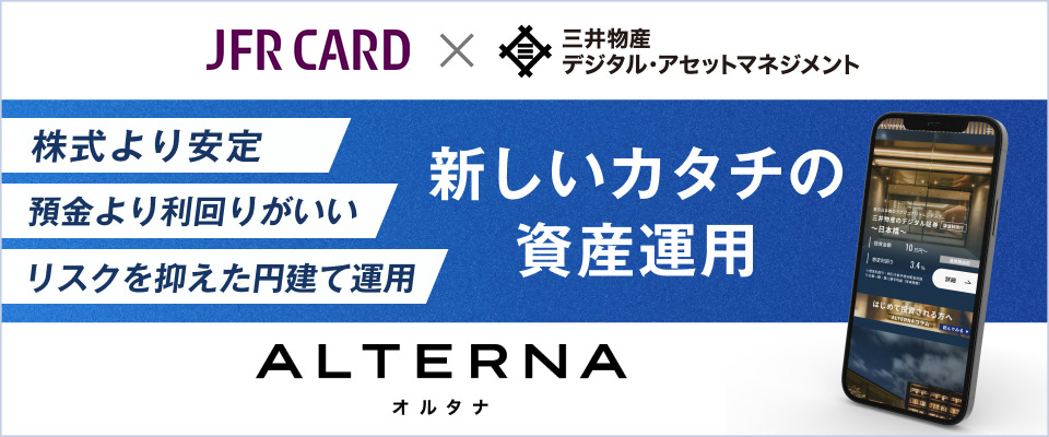 • JFRカード株式会社は、株式会社SBI証券と三井物産デジタル・アセットマネジメント株式会社とブルーモ証券株式会社を所属金融商品取引業者とする金融商品仲介業者です。